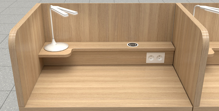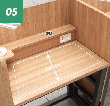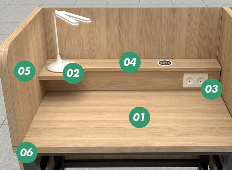 와이드한 책상 면적으로 완성된 스마트데스크는 시중 독서실 책상보다 약 100mm 이상 넓어 고객의 학습 공간 활용율 UP!