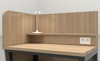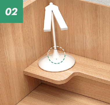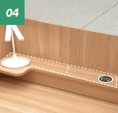 2단 구조로 완성된 스마트데스크는 불필요한 공간을 제거하는 동시에 노트나 필기도구, 텀블러 등 개인 소지품을 보관할 수 있도록 추가적인 공간구성!
